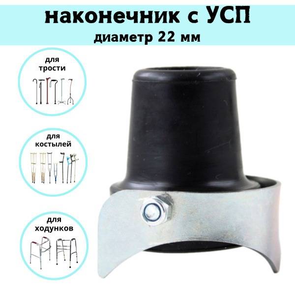 The tip includes an internal metal insert and a steel crown with 3 protective prongs and a polymer coating for added durability. It's universally compatible with a wide range of walking aids, including elbow crutches, underarm crutches, folding canes, four-point canes, and other types of canes and crutches for seniors.