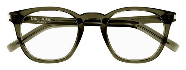 The sophisticated green color of these Saint Laurent SL28OPT 003 eyeglasses introduces a natural, fresh, and distinctive element to your look. It softens facial features and imparts a sense of ease and natural grace, appealing to those with an appreciation for nature-inspired styles, creativity, and understated elegance.
