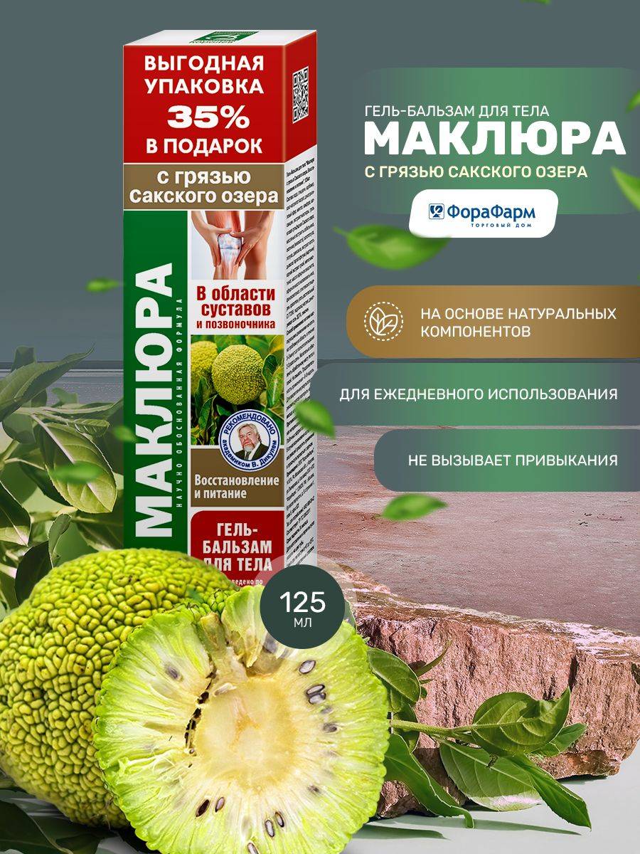 Maclura, Saki Lake mud, body gel-balsam, joint pain relief, arthritis, arthrosis, bursitis, gout, osteochondrosis, radiculitis, rheumatism, muscle pain, back pain, ligament pain, natural remedy, immunomodulator, anti-inflammatory, analgesic, regenerative, antioxidant, skin health, psoriasis, natural cosmetics, KorolevFarm, Crimean Maclura, 125ml.