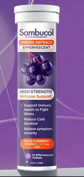 Fight off cold and flu symptoms quickly and easily with Sambucol 15 Effervescent Tablets. Our delicious, convenient effervescent tablets provide fast-acting relief thanks to a powerful blend of elderberry extract and other essential vitamins, including vitamin C and zinc. Sambucol's unique formula offers superior immune support, helping your body fight off illness naturally. Experience the benefits of elderberry for yourself – dissolve a tablet in water for a refreshing, effective way to boost your well-being and support a healthy immune system. Sambucol 15 is the perfect natural remedy for cold and flu season. These elderberry tablets offer quick relief and are a convenient dosage for everyday use. Learn more about the elderberry extract benefits and how elderberry for immune system support can help you stay healthy. This elderberry supplement provides cold relief and flu relief.