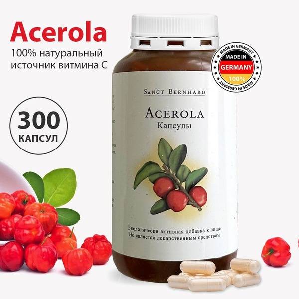 Acerola, Acerola Capsules, Vitamin C, Immune Support, Antioxidant, Barbados Cherry, Sanct Bernhard, German Made, High Potency Vitamin C, Immune Booster, Natural Vitamin C, Bioavailable Vitamin C, Antioxidant Supplement, Health Supplement, Energy Booster, Metabolic Support, Cold and Flu Season, Free Radical Damage, Collagen Production, High Quality, German Quality, 496mg, 300 Capsules