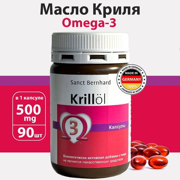 Keywords: Krill oil, Omega-3, astaxanthin, Sanct Bernhard, krill oil benefits, Omega-3 supplements, heart health, brain health, joint health, antioxidant, eye health, German-made, high-quality supplements, phospholipid, superior absorption, cognitive function, age-related macular degeneration, cholesterol reduction, 90 capsules, dietary supplement, health supplement, fish oil alternative.