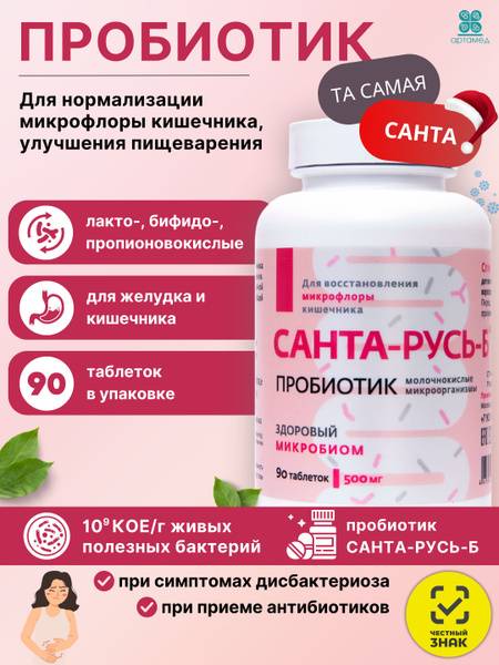 Santa Rus B is a powerful probiotic supplement containing a synergistic blend of lactobacilli, bifidobacteria, and propionibacteria to support digestive health and restore gut microbiota balance. This domestically produced probiotic is formulated to prevent and treat various gastrointestinal disorders, including those caused by dietary changes or irregular eating habits. Santa Rus B's high-potency formula (10⁹ CFU/g) delivers a multifaceted approach to gut health: suppressing pathogenic bacteria, stimulating the production of antibacterial substances, improving digestion and reducing bloating, modulating the immune system, and optimizing bowel motility and enzyme function. Experience the enhanced benefits of this superior probiotic blend for a healthier gut and improved overall well-being.
