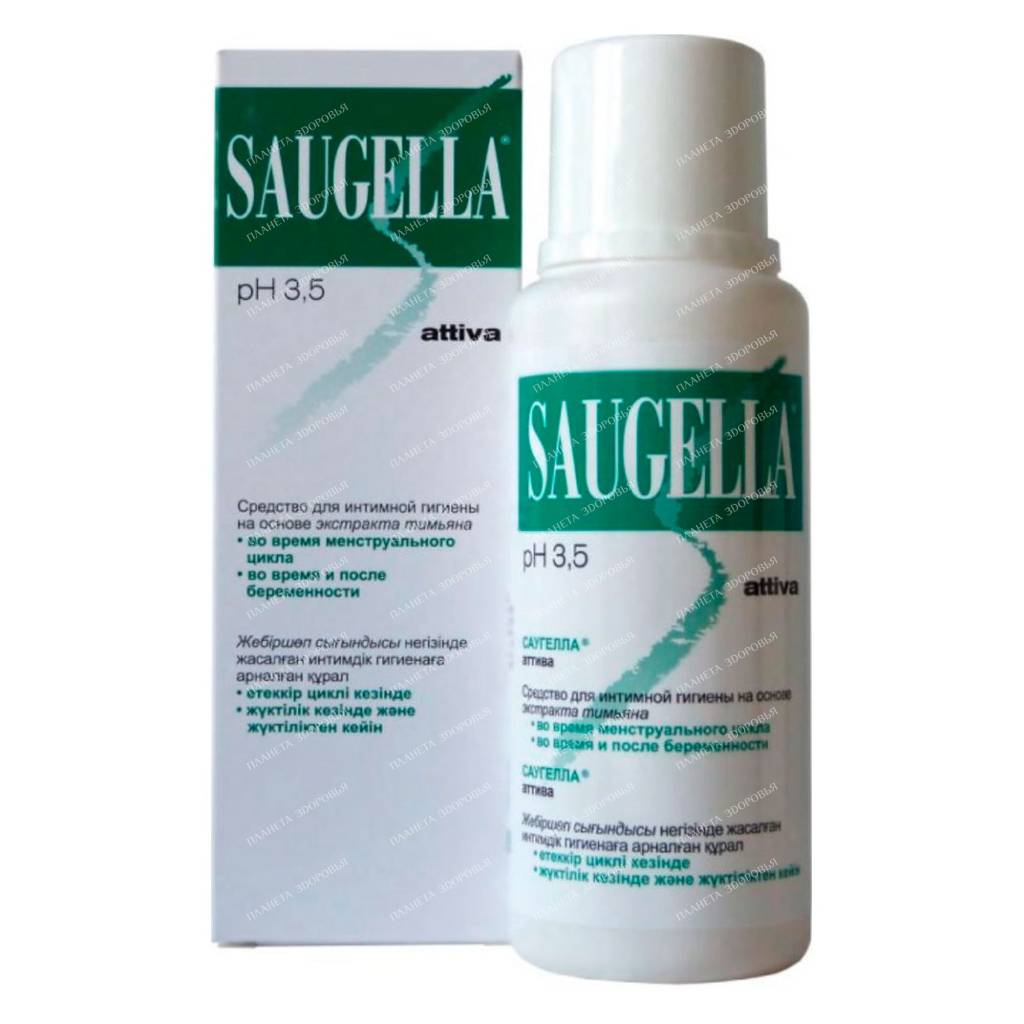 Description of productSaugella® attiva is a product specially developed for intimate hygiene, based on thyme extract, which has a deodorizing effect. Saugella® attiva is recommended for use: • during the menstrual cycle, • during and after pregnancy, • for body hygiene. ActionCleansing intimate areas, deodorizing effect. Directions for useUse as a normal cleanser 1-2 times a day. Shake well before use. Dilute a small amount with water, apply and rinse. For outdoor use. ContraindicationsIndividual intolerance to the components of the product. Buy Saugella attiva Liquid soap Saugella attiva 250 ml