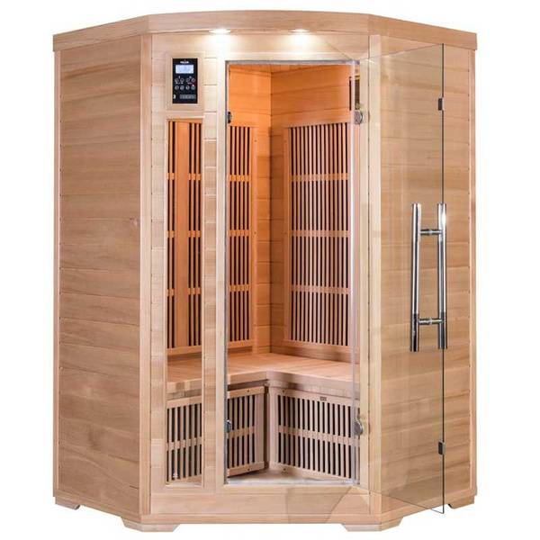 infrared sauna, infrared cabin, SaunaMagic, Classic Corner Mini CS, infrared heat therapy, wellness, home sauna, carbon heaters, easy assembly, Canadian hemlock, chromotherapy, ionizer, audio system, health benefits, relaxation, detox, SM-C2-Corner-CS, far infrared, infrared sauna benefits, small infrared sauna, corner sauna.