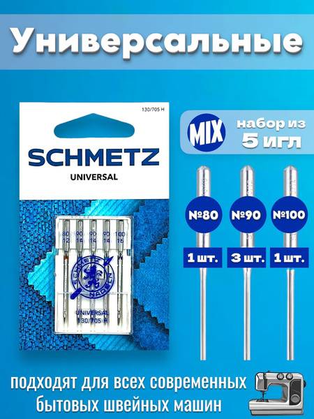 SCHMETZ needles, sewing machine needles, overlocker needles, universal needles, needle sizes 80, needle size 90, needle size 100, 5 pack needles, sewing needles, home sewing needles, sewing supplies, sewing accessories, high-quality needles, conical point needles, rounded tip needles.
