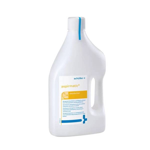 Aspirmatic (2L) from Schülke & Mayr is a powerful, concentrated disinfectant designed for use in dental practices and healthcare facilities. This aldehyde-free formula provides broad-spectrum antimicrobial activity, effectively eliminating Gram-positive and Gram-negative bacteria (excluding Mycobacterium tuberculosis), Hepatitis B and C viruses, HIV, and Candida fungi.