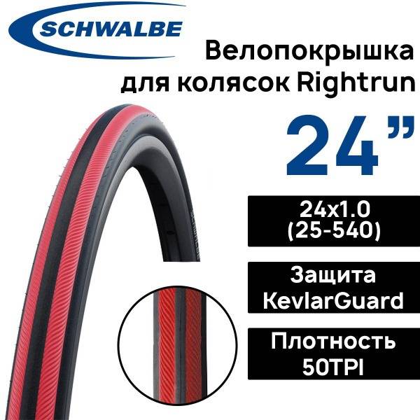 Schwalbe Rightrun 24x1.00 (25-540) Wheelchair Tire - Puncture-Resistant KevlarGuard