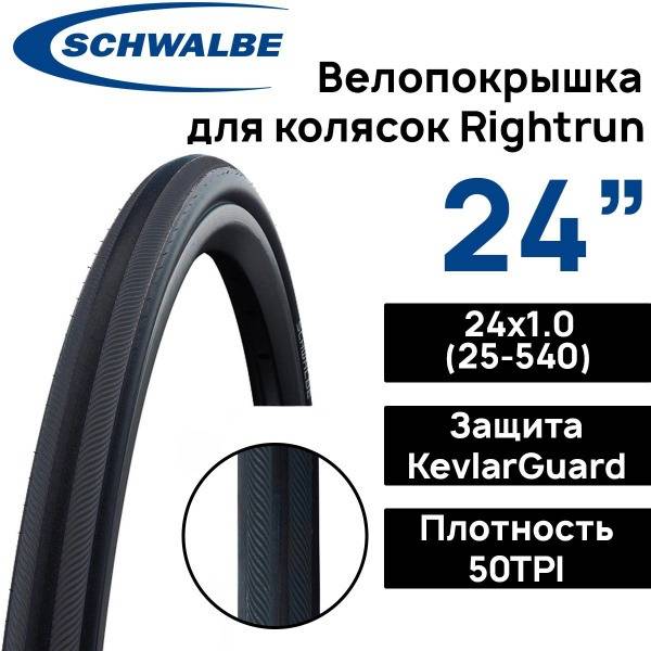 Experience superior performance and reliability with the Schwalbe Rightrun 24x1.00 (25-540) wheelchair tire. Designed for demanding indoor and outdoor use, this tire offers a unique combination of features for an exceptional riding experience.