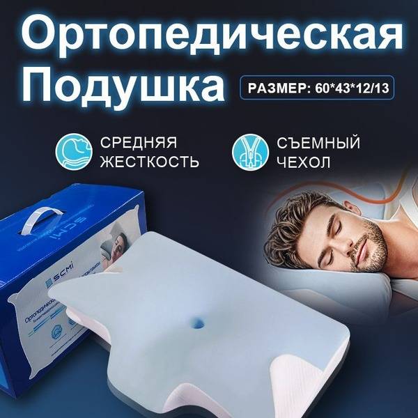 Experience ultimate sleep comfort with the SCMi orthopedic pillow. Its expertly designed anatomical shape provides optimal support for your head and neck, promoting healthy spinal alignment and reducing neck pain. Measuring a generous 60x43x13 cm and weighing 1250g, this pillow offers luxurious comfort without being overly bulky. The soft, durable cover is a blend of 75% cotton and 25% spandex for lasting quality and easy care, while the 100% cotton inner cover ensures a hypoallergenic sleep environment. The high-quality memory foam conforms perfectly to the contours of your head and neck, relieving pressure points and promoting deep, restful sleep. The removable and washable cover makes maintenance a breeze. Invest in your sleep health with the SCMi orthopedic pillow.