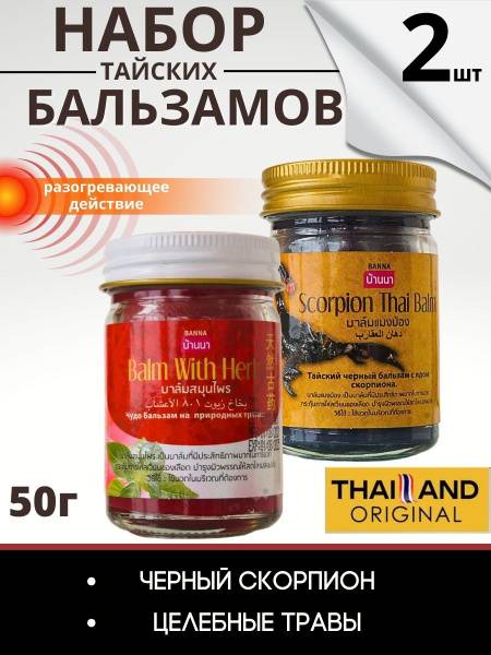 Banna, Thai balm, muscle balm, joint balm, warming balm, pain relief, muscle pain, joint pain, massage balm, scorpion venom balm, black scorpion balm, red warming balm, Thai massage, muscle relaxation, inflammation relief, post-workout recovery, natural pain relief, traditional Thai formula, 50ml, duo pack, muscle rub, joint rub.