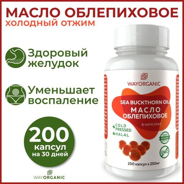 Sea Buckthorn Oil Capsules, Cold-Pressed Sea Buckthorn Oil, Altai Sea Buckthorn, Immune Support, Cholesterol Support, Blood Sugar Support, Cardiovascular Health, Digestive Health, Antiviral, Vitamins, Minerals, Antioxidants, 200 Capsules, 250mg, WAY ORGANIC, Supplement, Health Supplement, Dietary Supplement.