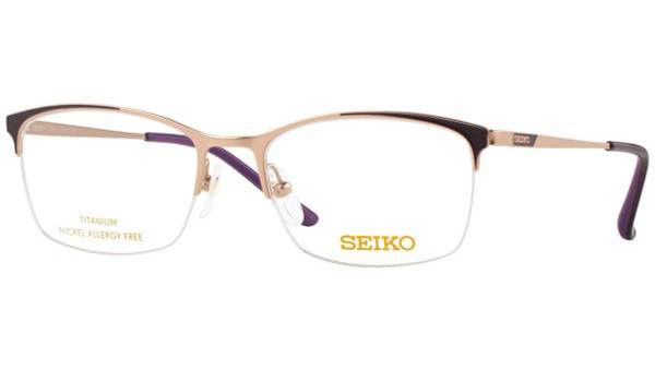 Experience unparalleled comfort and style with the Seiko T7040-043 women's titanium eyeglasses. These lightweight, half-rim cat-eye frames boast a glossy gold finish with elegant lilac accents, channeling the retro chic of the 50s and 60s. Crafted from 100% pure titanium, they are 45% lighter than stainless steel and twice as strong as aluminum, ensuring exceptional durability and hypoallergenic properties. The beta-titanium temples offer a memory effect, adapting perfectly to your face and returning to their original shape for lasting comfort. Measuring 135mm (temple to temple, inside), these frames are ideal for average-width faces. Weighing a mere 15 grams, you'll barely notice you're wearing them. Enjoy superior clarity with the half-rim design, and personalize your glasses with prescription lenses, including optional photochromic lenses (chameleon effect). Includes a Seiko case and a 1-year warranty. Nickel-free for sensitive skin.