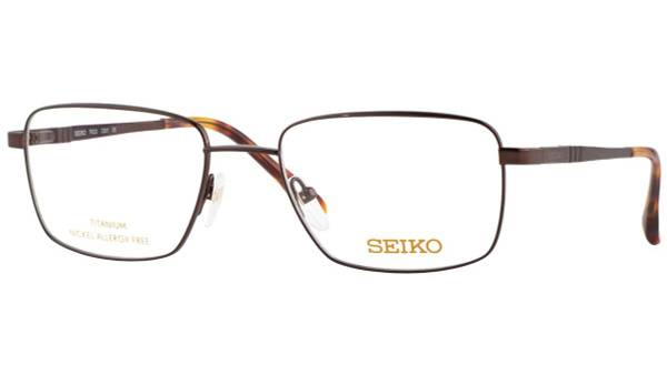 Seiko eyeglasses, titanium eyeglasses, men's eyeglasses, hypoallergenic eyeglasses, lightweight eyeglasses, durable eyeglasses, nickel-free eyeglasses, square eyeglasses, classic eyeglasses, Seiko T9033, Seiko T9033-007, Seiko Optical Europe GmbH, flex hinges, adjustable nose pads, adjustable temples, dark brown eyeglasses, 140mm eyeglasses, titanium frames, luxury eyeglasses, high-quality eyeglasses