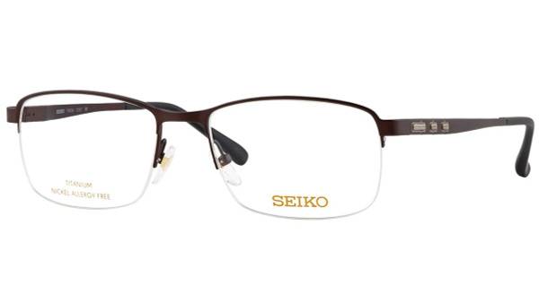 Seiko eyeglasses, Seiko T9036-007, titanium eyeglasses, men's eyeglasses, lightweight eyeglasses, durable eyeglasses, hypoallergenic eyeglasses, semi-rimless eyeglasses, square eyeglasses, matte brown eyeglasses, Seiko Optical Europe GmbH, German-made eyeglasses, nickel-free eyeglasses, flex hinges, adjustable temples, adjustable nose pads, 1-year warranty.