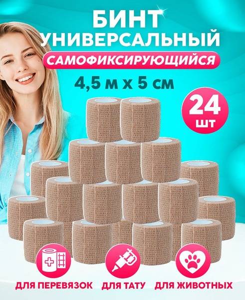 Title: 24 Pack 5cm x 4.5m Self-Adherent Cohesive Bandages - Beige/Skin Tone - for Sports, Tattoos, & Veterinary Use