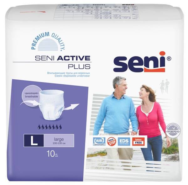 Experience superior comfort and protection with Seni Active Plus adult diaper underwear, Large size (100-135cm waist). Designed for moderate to heavy incontinence, these absorbent briefs offer a discreet and reliable solution for active individuals and those undergoing physical rehabilitation. Soft, stretchy, and easy to put on and off like regular underwear, they provide a comfortable, secure fit without restricting movement.