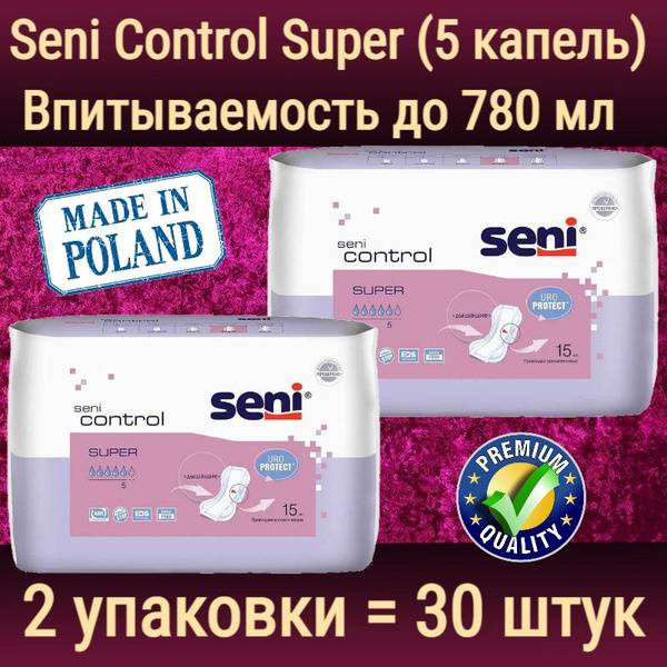 Seni Control Super, Seni Lady Super, incontinence pads, incontinence products, adult diapers, bladder leakage, urinary incontinence, women's incontinence, heavy absorbency, 780ml absorbency, 5-drop absorbency, night time protection, discreet incontinence pads, comfortable incontinence pads, latex-free, anatomical fit, absorbent pads, women's health, feminine hygiene, bladder control, reliable protection, skin friendly, odor control.