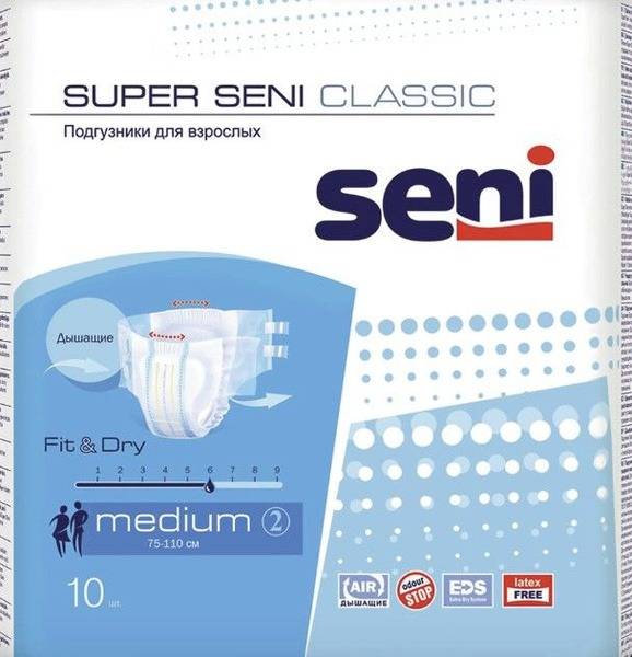 Description: Seni Super Medium adult diapers offer superior breathability and absorbency for managing heavy incontinence. Designed for comfort and reliable protection, these classic diapers are ideal for individuals with severe urinary and/or fecal incontinence, including bedridden patients. With a comfortable fit for waist and hip circumferences of 75-110 cm (29.5-43.3 inches), Seni Super Medium diapers provide discreet and dependable protection throughout the day and night.