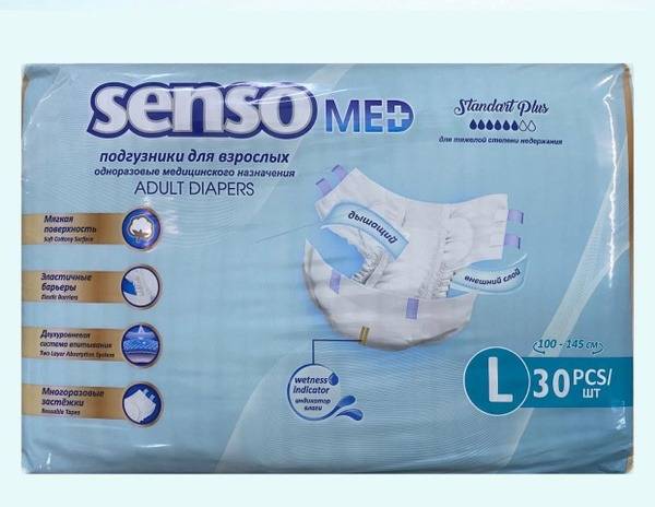 adult diapers, incontinence diapers, large adult diapers, Senso Med, Senso Med Standart Plus, absorbent diapers, breathable diapers, comfortable diapers, incontinence care, adult incontinence, elderly care, diaper delivery, 30 count diapers, reliable diapers, skin protection, all-day dryness, secure fit, men's incontinence, women's incontinence, home healthcare, healthcare facilities.