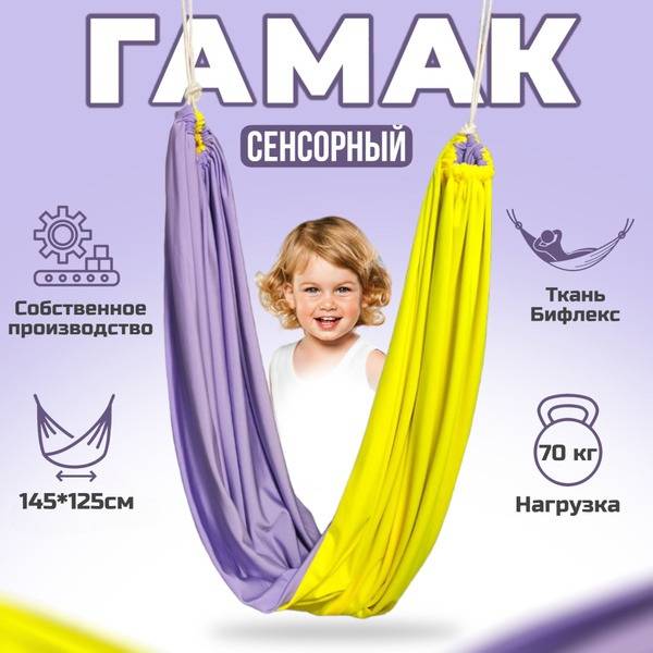 Our high-quality sensory hammock measures 145x125 cm (approx. 57x49 inches), supports up to 70kg (154 lbs), and features a vibrant range of colors. Includes hammock, 1.5m (approx. 59 inches) rope, and 2 carabiners.
