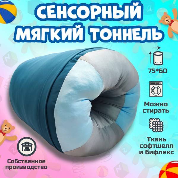 This soft play tunnel ("sensory barrel") is a therapeutic tool for sensory integration and neuro-corrective activities, offering a cozy cocoon-like environment. Its weighted design provides deep pressure stimulation, perfectly addressing proprioceptive needs, while the soft inner lining ensures a pleasant, non-irritating tactile experience.