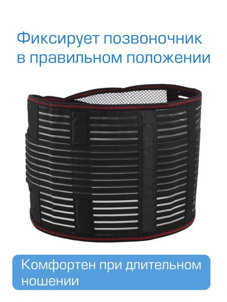 This lumbar orthopedic corset provides exceptional lower back support and features firming, slimming properties. Crafted from breathable 3D mesh, it effectively wicks away excess moisture for superior comfort. Four integrated rigid stays in the back area offer robust lumbar support and promote even load distribution across your muscles and spine. A wide, adjustable Velcro strap allows for personalized tightening and secure fixation around your waist.