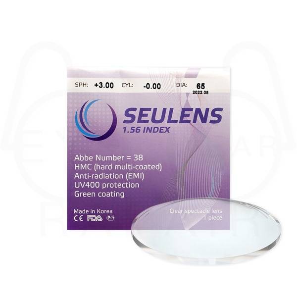 Experience superior clarity and protection with SEULENS 1.56 HMC Aspheric Polymer Lenses. These high-index lenses feature a durable 8H hard coating, multi-layer anti-reflective coating with a green residual reflection, and EMI (electromagnetic interference) shielding. Enjoy enhanced UV protection (<380nm) and exceptional visual performance with a refractive index of 1.56 and Abbe number of 38. Perfect for prescriptions up to -6.5 diopters, with a 65mm diameter. Order your SEULENS lenses today.