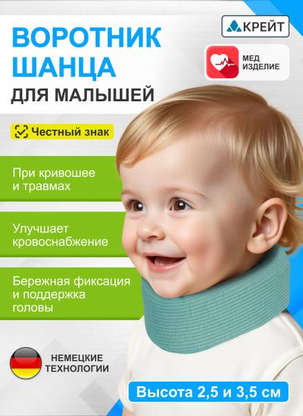 Discover the Shants Collar for babies and toddlers, an essential orthopedic cervical immobilizer designed for effective recovery and relief from torticollis and other infant neck conditions. This premium neck brace for newborns is a vital accessory for treatment, providing gentle support and alignment. The F-301 "Kreit" neck brace is expertly crafted for infants, considering their delicate physiology, making it suitable from the very first days of life for babies experiencing discomfort, pain in the cervical spine, or head pain. This is a Registered Medical Device.