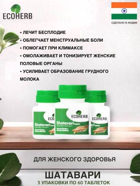 Experience the rejuvenating power of ECOHERB Shatavari, a 3-pack Ayurvedic supplement featuring 60 tablets per bottle. This potent Indian herb supports women's health in numerous ways. Shatavari's active components combat age-related changes, offer antioxidant protection, and boost overall well-being. It promotes cellular renewal, resulting in firmer, more elastic skin, reducing the appearance of wrinkles and stimulating collagen production for a youthful complexion. Beyond beauty, Shatavari supports urinary and reproductive health, enhances libido, and may improve fertility. This targeted women's health supplement promotes the proper functioning of reproductive organs, aiding in fertility treatment and prevention. It can alleviate menstrual discomfort, regulate cycles, reduce abdominal pain, and balance hormones. Consult an Ayurvedic practitioner before use.