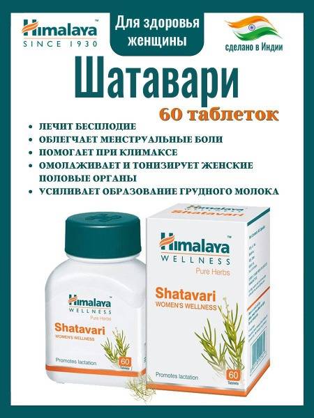 Shatavari, Himalaya, women's health, menstrual cycle, menopause, reproductive health, fertility support, hormonal balance, pain relief, Ayurvedic, herbal supplement, gynecological health, fibroids, endometriosis, mastopathy, cervical erosion, pelvic inflammatory disease, breast milk production, infertility, herpes, diarrhea, ulcers, gastritis, skin health, 60 tablets, India.