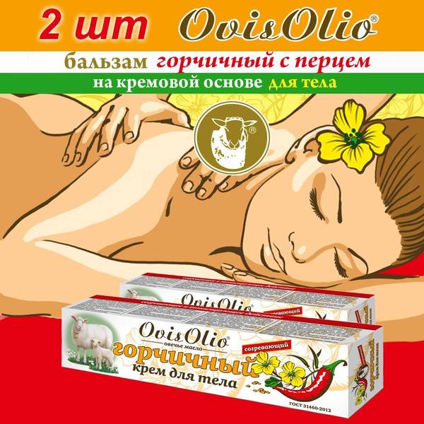 Experience the powerful warming and toning effects of OvisOlio Sheep's Wool Mustard Body Cream. This two-pack provides potent relief from muscle aches, joint pain, and back pain associated with conditions like arthritis, osteoarthritis, and radiculitis. Our unique formula, enriched with mustard extract, chili pepper extract, camphor, and beeswax, improves microcirculation, promotes vasodilation, and soothes inflammation. Scientifically proven to be effective, this cream offers powerful analgesic properties suitable for adults and children. Provides effective at-home first aid for muscle pain, reducing swelling and easing discomfort from conditions like osteochondrosis, varicose veins, and the common cold. OvisOlio also helps relieve symptoms of nasal congestion, sore throat, and headaches. Enjoy the soothing warmth and effective pain relief of OvisOlio Sheep's Wool Mustard Body Cream – your natural solution for comprehensive body pain relief.