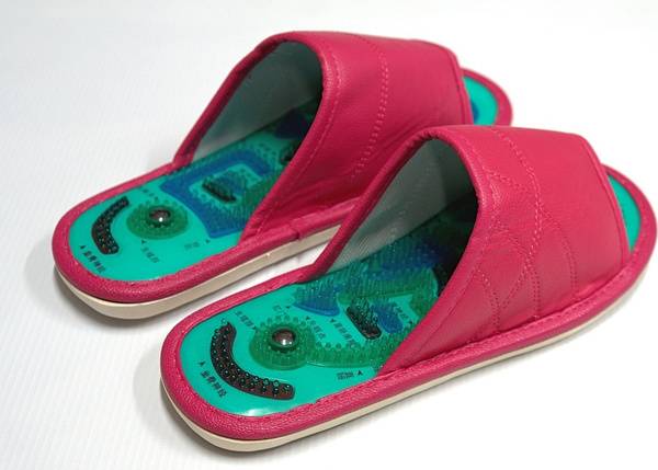 Experience the therapeutic benefits of acupressure and magnetic therapy with our comfortable and stylish Shiatsu massage slippers. Perfect for home use, these slippers feature strategically placed acupressure points and include six additional magnets for enhanced stimulation. Ideal for those who spend long hours on their feet or lead sedentary lifestyles, these slippers help relieve foot fatigue, reduce muscle tension, and improve circulation. For those with sensitive feet, cotton socks can be worn for added comfort. Start with 5-10 minutes of daily use and gradually increase the duration up to 3-4 hours. Hand washable. Insole length: 27cm. Magnets are supplied separately.