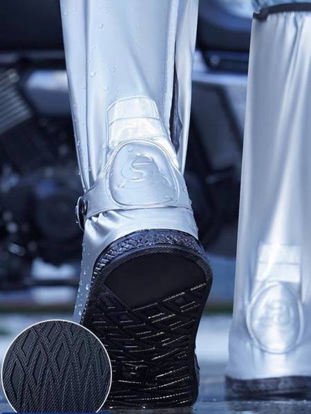 These 42cm high waterproof shoe covers provide superior protection from heavy rain and harsh conditions. Featuring secure side buckles for easy on/off and a snug, reliable fit, these reusable covers are built to last. The durable rubber inner layer effectively shields your shoes and trousers from water and mud, while the reinforced, anti-slip edges provide excellent traction and wear resistance. For added safety, a reflective design on the rear enhances visibility during nighttime activities. Perfect for a variety of uses, including motorcycle riding, rainy days, muddy trails, desert travel, outdoor adventures, and water play. Our unisex silicone shoe covers are your reliable defense against the elements.