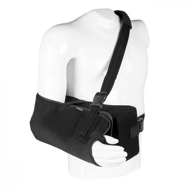 The Ottobock 50A9 Omo Immobil Sling Abduction shoulder support (size M) offers effective immobilization and gentle abduction of the shoulder joint. This lightweight, comfortable sling secures the upper extremity to the torso with the forearm flexed and the shoulder in 15° of abduction and internal rotation.