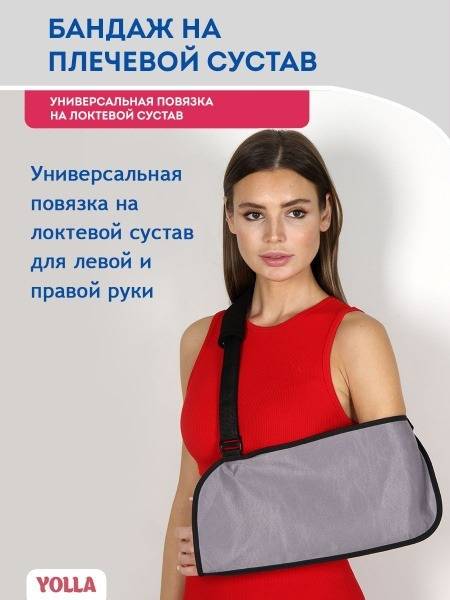 This universal sling is suitable for both left and right arms, providing moderate support for various conditions including: arm fractures, subluxations, shoulder dislocations, shoulder, forearm, and hand contusions, partial ligament injuries of the shoulder joint, acromioclavicular joint, and elbow joint, upper extremity paresis and paralysis, shoulder arthritis and arthrosis, and periarthritis. This adult shoulder sling is part of YOLLA's extensive line of orthopedic products. Consult your doctor or physical therapist before use.