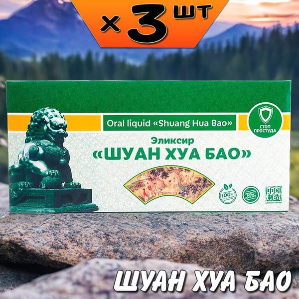 Renowned as one of China's most prevalent traditional medicine preparations, Shuang Hua Bao is a naturally derived antibiotic. It can be used independently of chemical antibiotics to treat numerous inflammatory conditions. This elixir demonstrates significant efficacy against influenza viruses and other pathogens causing respiratory infections. It targets viruses like mumps, tick-borne encephalitis, and herpes (including herpes IgG), as well as bacteria such as streptococcus, staphylococcus, salmonella, various enterobacteria, proteus, and more.