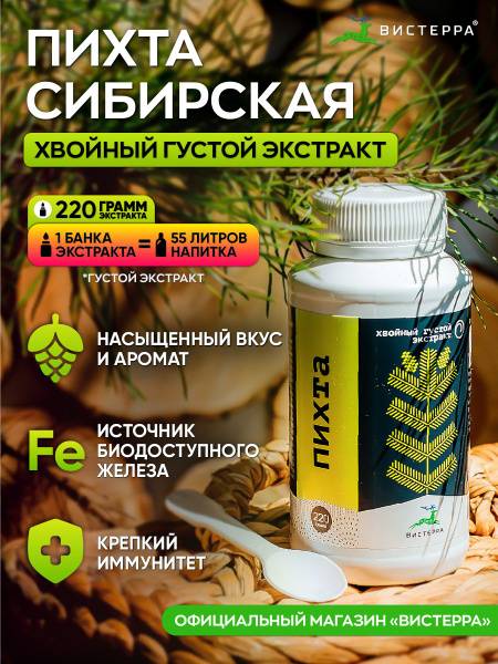 Boost your immunity with WISTERRA's Siberian Fir Needle Extract. This concentrated, water-based extract is rich in bioavailable iron and other essential nutrients, promoting overall vitality. Harnessing the ancient healing power of Siberian fir, known since Hippocrates' time for its wound-healing properties, this extract is produced using a unique multi-stage extraction and vacuum concentration process at temperatures below 45°C, preserving maximum bioactivity. Packed with bioavailable iron, manganese, zinc, copper, organic acids, polyphenols, tannins, carotene, chlorophyll, polyprenols, and phytosterols, this extract offers a powerful natural boost to your health and well-being. Experience the potent benefits of Siberian fir, sustainably harvested and expertly processed for superior quality and bioavailability.