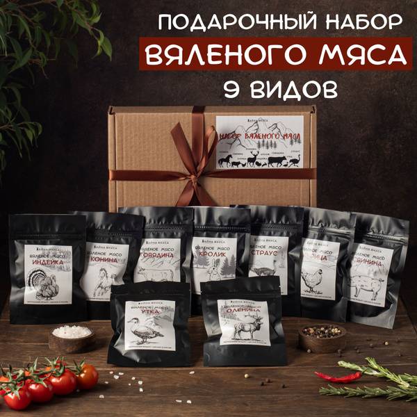 Description: Indulge in our Siberian Snack Box, a curated selection of nine premium dried meats: turkey, beef, horse, venison, elk, ostrich, duck, rabbit, and pork (30g each). This exquisite gift set, presented in a stylish kraft box with a vibrant label, makes a thoughtful present for loved ones, colleagues, or friends. Crafted from carefully selected farm-raised meat, each slice boasts a naturally delicious flavor, enhanced only with salt and spices – no sugar, artificial flavors, or preservatives. High in protein and low in weight, these jerky delights are perfect for athletes, hikers, campers, and anyone who appreciates the finest quality meat snacks. A truly unique and memorable gift for the discerning palate, it's the ultimate "manly" present, and an ideal pairing for wine, beer, or aged spirits. Perfect for corporate gifts, birthdays, February 23rd, March 8th, and any occasion deserving a touch of sophisticated indulgence. Explore our selection of dried meats, jerky, and meat snacks today.