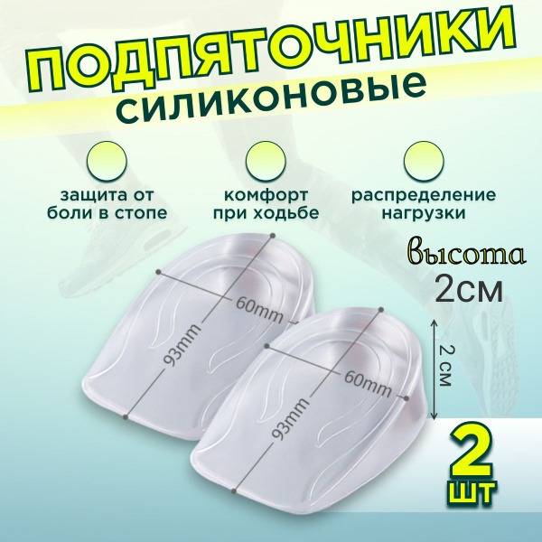 Description: Experience immediate relief from heel pain and add 2cm to your height with these silicone heel lifts. Made from medical-grade, shock-absorbing gel, they cushion each step, reducing impact and pressure on your heels. The gel's direct contact with your skin provides soothing hydration, helping to heal minor cracks and dryness. A textured surface gently massages your heels with every stride, while a strong adhesive keeps them securely in place within your shoes. Ideal for plantar fasciitis, heel spurs, heel pain, dry/cracked heels, and those experiencing increased foot strain due to weight, prolonged standing, or simply desiring added height. Easy to clean with mild soap and water, these reusable heel lifts are designed for long-lasting comfort and support, transferring easily between shoes. Regular use promotes healthier heels, reduces pain and discomfort from plantar fasciitis, and enhances overall comfort.