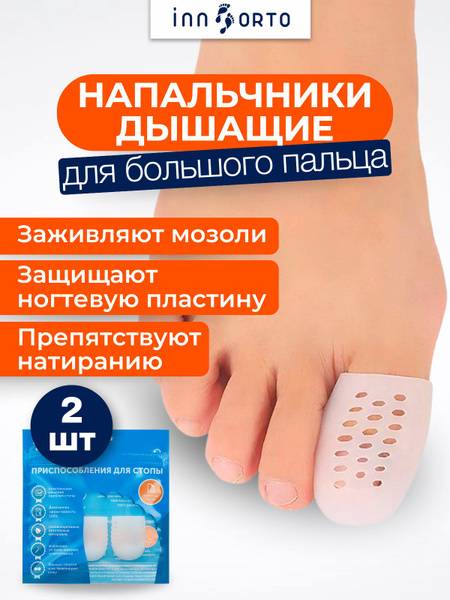 Experience pain relief and protection with INNORTO Silicone Toe Protector Caps (Item #51404). These universally sized, breathable gel caps (1 pair) gently cushion and protect your big toes from friction, pressure, and impact caused by footwear. Made from 100% medical-grade silicone, these soft, flexible caps conform comfortably to your toe, preventing slippage even when worn barefoot. Regular use helps alleviate pain from bunions, corns, and ingrown toenails, promoting proper toe alignment and reducing inflammation. The numerous ventilation holes allow for breathability, keeping your toes cool and dry. Simply hand wash in warm water, pat dry, and air dry at room temperature. Avoid drying on heating appliances or in direct sunlight. Dimensions: Length 4.5cm, Hole Diameter 2cm, Thickness 0.2cm. Find lasting comfort and relief with INNORTO.