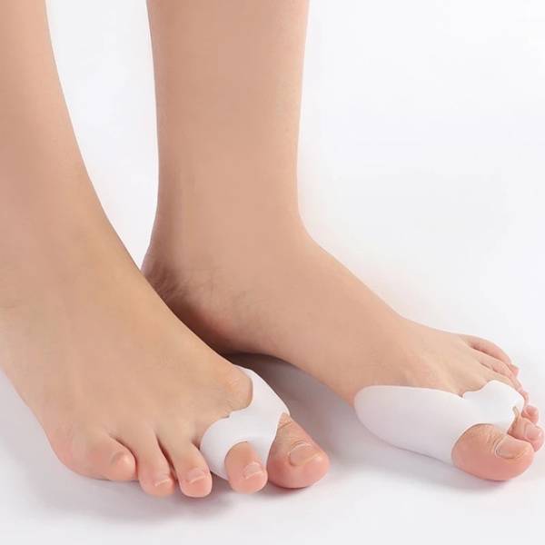 <img src="image1.jpg" alt="Silicone Toe Separator, Front View"> <img src="image2.jpg" alt="Silicone Toe Separator, Side View"> <img src="image3.jpg" alt="Silicone Toe Separator, Wearing Instructions">Features: