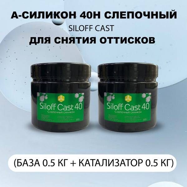 Keywords: Siloff Cast, A-silicone, putty, dental silicone, impression material, KrasTekhnoMed, 40H, Shore A hardness, 1kg, 500g, base, activator, Russia, dental lab, dental supplies, precision molding, silicone putty, high-quality silicone.