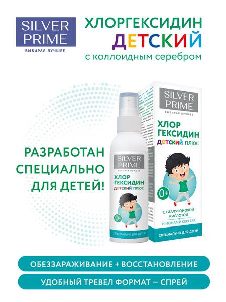 SILVERPRIME® Children's Chlorhexidine Spray is the first chlorhexidine spray developed with a unique formula containing natural ingredients, specifically designed for children's delicate skin from birth. This hand and body antiseptic features colloidal silver and extracts of healing plants, effectively combating most viruses, bacteria, and fungi. SILVERPRIME® offers multiple uses: