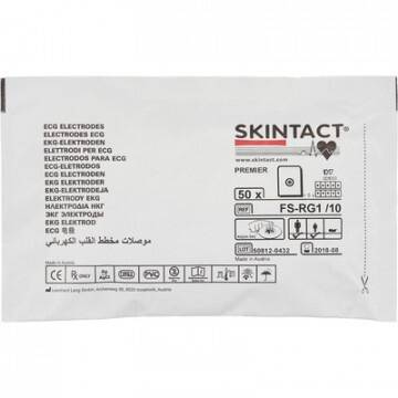 Skintact FS-RG1/10 disposable ECG electrodes offer superior performance for long-term Holter monitoring in medical settings. These 41 x 32 mm electrodes utilize a high-strength adhesive for reliable patient adhesion and secure fixation. Weighing less than 2g, they minimize patient discomfort. Exceptional performance is ensured with induced artifact electrode potential difference of no more than 10 mV and total electrode impedance below 500 ohms.