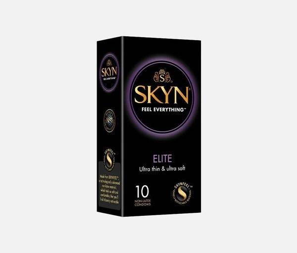 SKYN Elite, condoms, ultra-thin condoms, latex-free condoms, hypoallergenic condoms, polyisoprene condoms, non-latex condoms, condoms for sensitive skin, condoms for latex allergy, LifeStyles condoms, ultra-thin, comfortable condoms, sensitive condoms, sex, contraception, birth control, STI protection, HIV protection, pregnancy prevention, long-lasting lubricant, 10 pack, Thailand made.