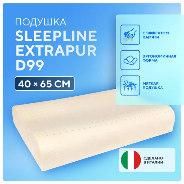 <img src="image1.jpg" alt="Sleepline Extrapur D99 Memory Foam Pillow"> <img src="image2.jpg" alt="Sleepline Extrapur D99 Memory Foam Pillow - Side View"> <img src="image3.jpg" alt="Sleepline Extrapur D99 Memory Foam Pillow - Close-up">Keywords: memory foam pillow, viscoelastic pillow, ergonomic pillow, neck pillow, sleep pillow, memory foam, orthopedic pillow, pressure relief pillow, Sleepline, Extrapur D99, 42x67cm pillow, comfortable pillow, restful sleep, spinal alignment, blood circulation, removable cover, machine washable cover.
