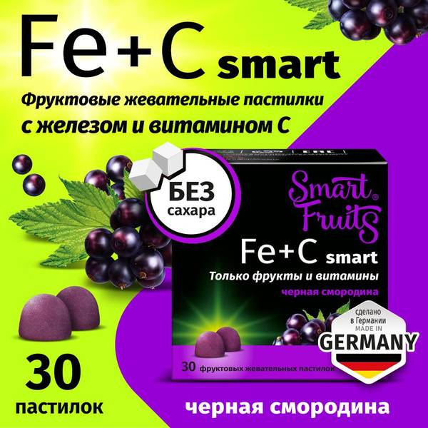 Smart Fruits Iron + Vitamin C gummies are delicious, blackcurrant-flavored chewable tablets, providing a convenient and enjoyable way to supplement your daily intake of iron and vitamin C. Made with natural fruit and vitamins, these sugar-free and sweetener-free gummies are formulated and produced using a unique technology by Paradise Fruits Solutions GmbH & CO (Germany), in a facility near Hamburg.