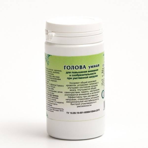 Smart Mind's unique herbal formula includes: Birch leaves, purple loosestrife, melilot, goldenrod, water pepper, bettongia, primrose, eupatorium, musk thistle herb, fir needles, willow bark, chaga mushroom. (Supporting ingredients: lactose, calcium stearate, aerosil).