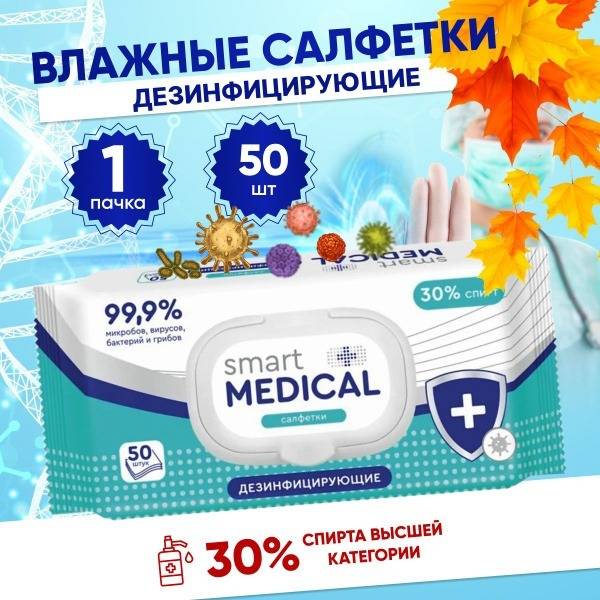 Smart Medical Disinfecting Wipes offer powerful, broad-spectrum protection against a wide range of pathogens. Each wipe in this 50-count pack is infused with an alcohol-based formula proven effective against bacteria, viruses causing acute respiratory illnesses, and fungi (including Candida).